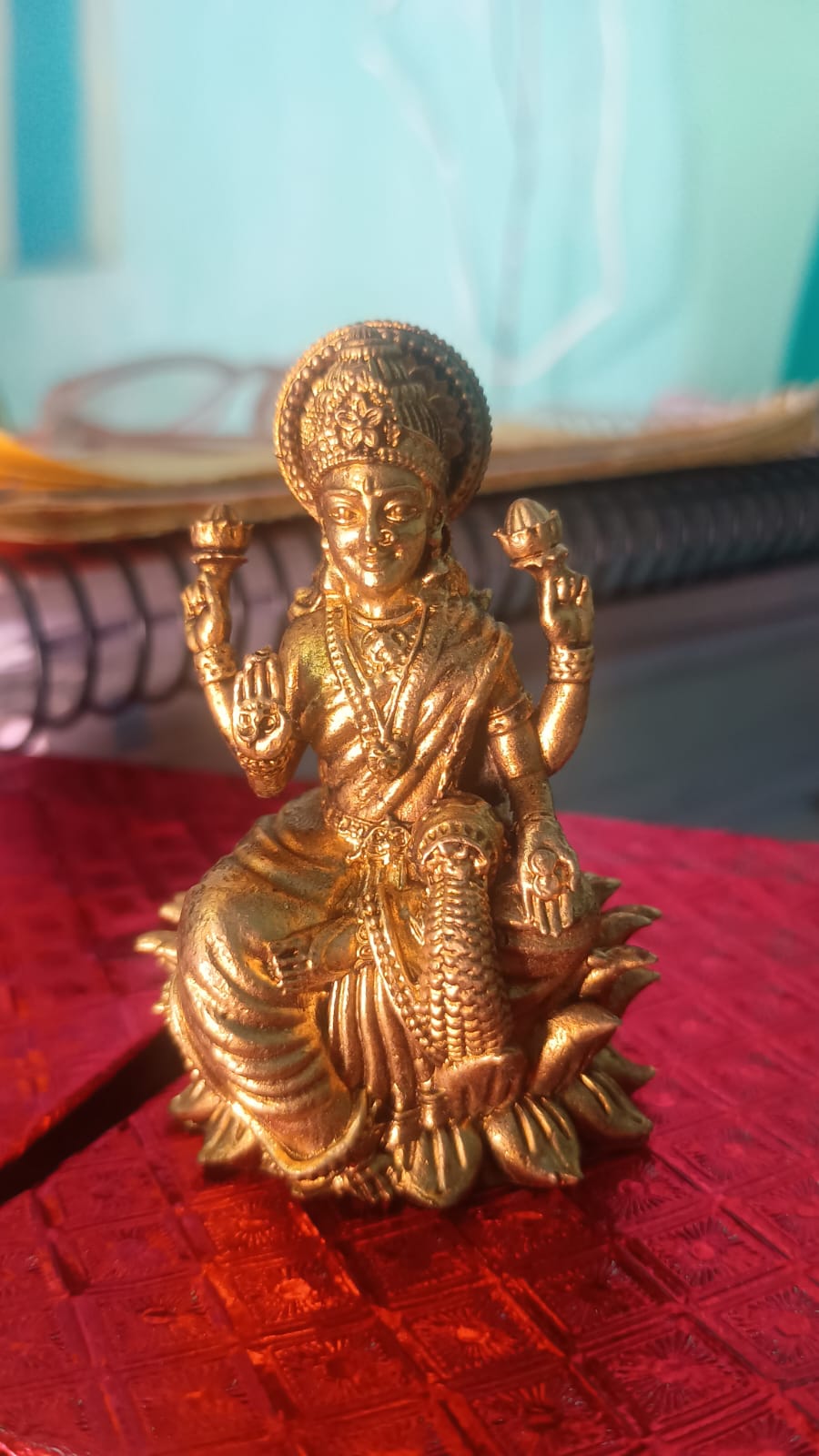 1 review for Brass 4 Armed Lakshmi Idol on Lotus | Goddess Lakshmi Murti