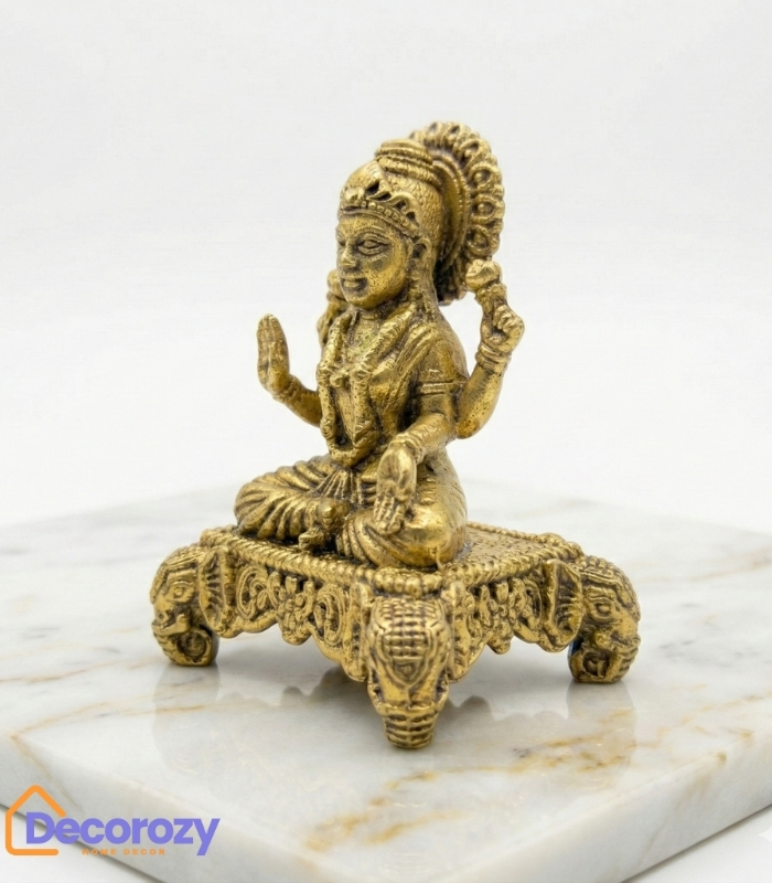 Brass Lakshmi Idol on Raised Pedestal – Symbol of Prosperity, Protection & Grace