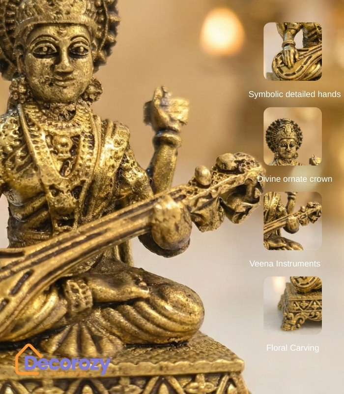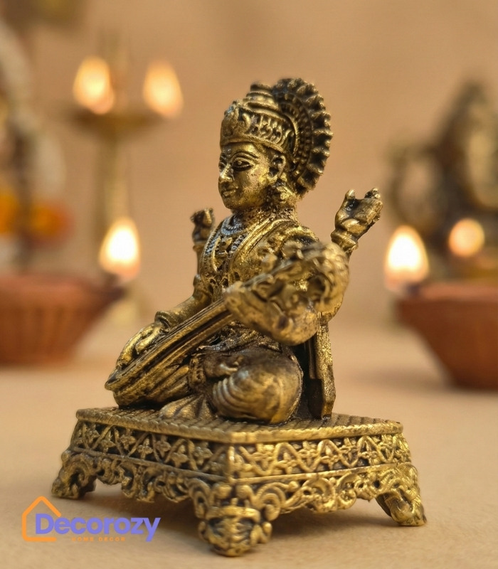 Brass Saraswati Devi Idol – Divine Symbol of Knowledge, Art & Inner Peace